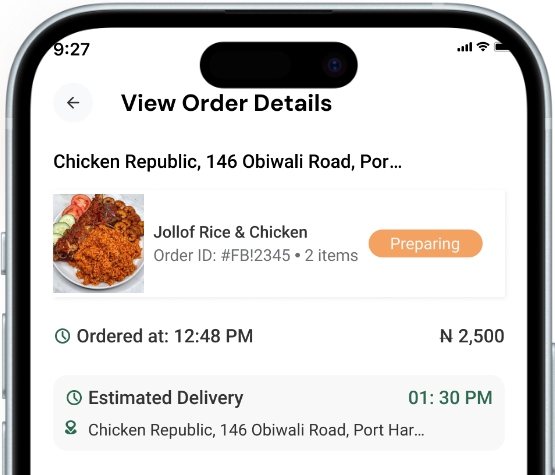 Stay in the loop from the moment you order to delivery. With real-time tracking, you can see when your food is being prepared, picked up, and exactly where your rider is on the map.